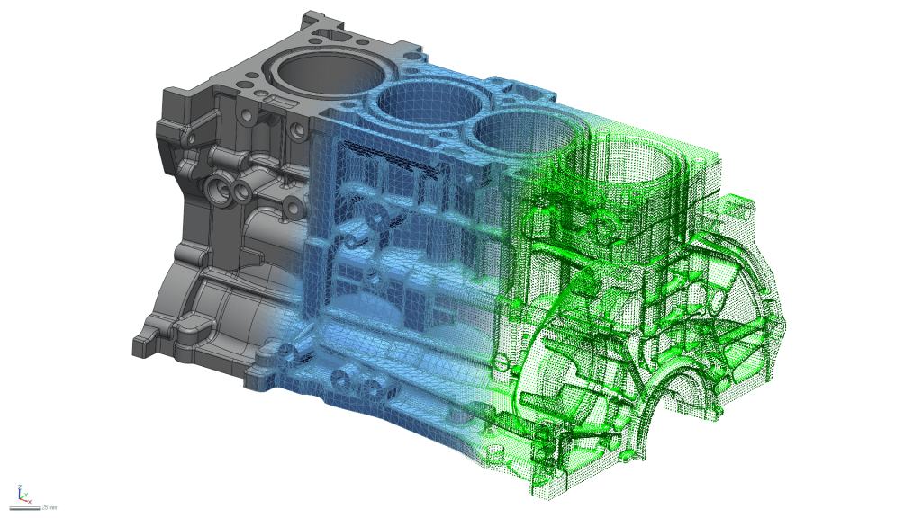 Escaneo 3D industrial con precisión de 0.025 mm, donde se proporcionará un archivo en formato PLY, ASC, MESH o STL.